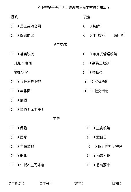 新员工须知检查表Ⅰ