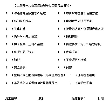 新员工须知检查表Ⅱ